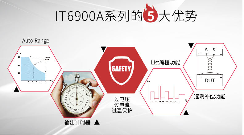 IT6900系列可編程直流電源采用Auto-range自動檔位技術,讓客戶可以在固定的功率上達到Z大的輸出電壓或電流。
